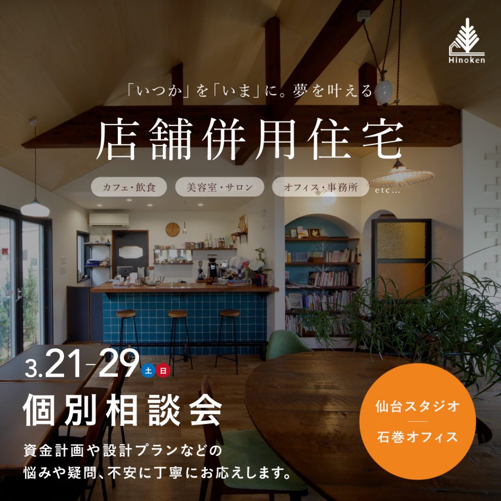 【無料】3/21(土)〜29(日)店舗併用住宅・個別相談会のお知らせ(予約制)